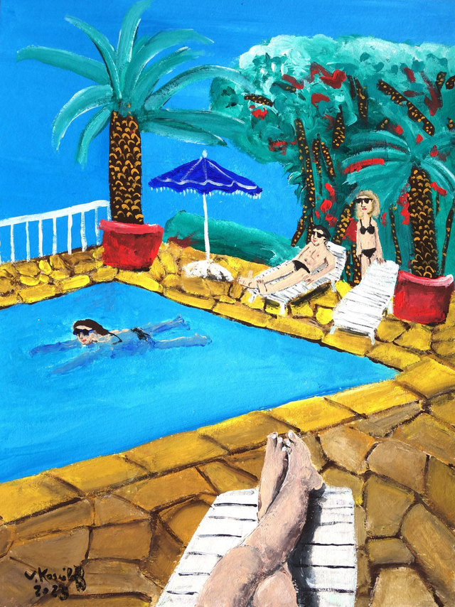 Acrylique sur papier, 40/30cm, 300gr. Vendue encadrée avec marquise. Cadre aluminium de couleur noire, vitre organique, 50/40cm.