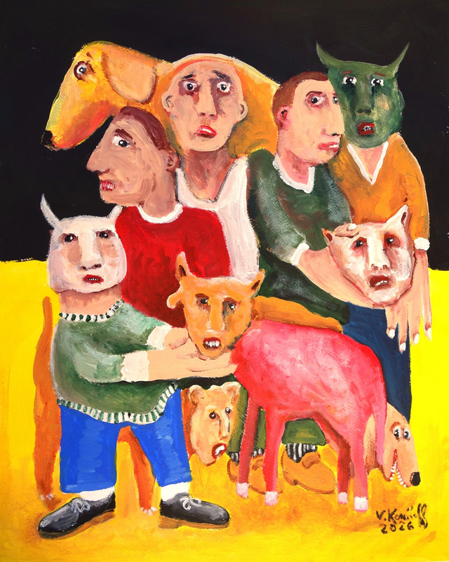 Acrylique sur papier (300g), dimension 52/42cm. Vendue encadrée avec marquise. Cadre Aluminium, couleur noire.