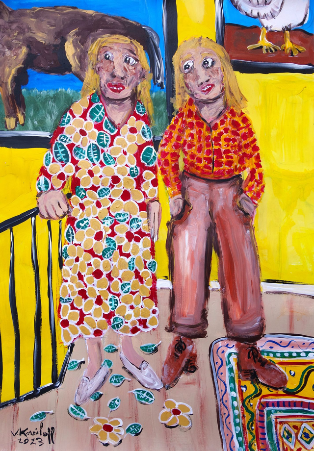 Acrylique sur papier, 300gr. 62/45cm, vendu avec marquise et encadré. Cadre aluminium couleur noire, verre organique, dim.70/50cm.