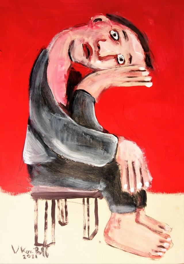 Acrylique sur papier, 300gr. 40/30cm, vendu avec marquise et encadré. Cadre aluminium couleur noire, verre organique, dim.50/40cm.