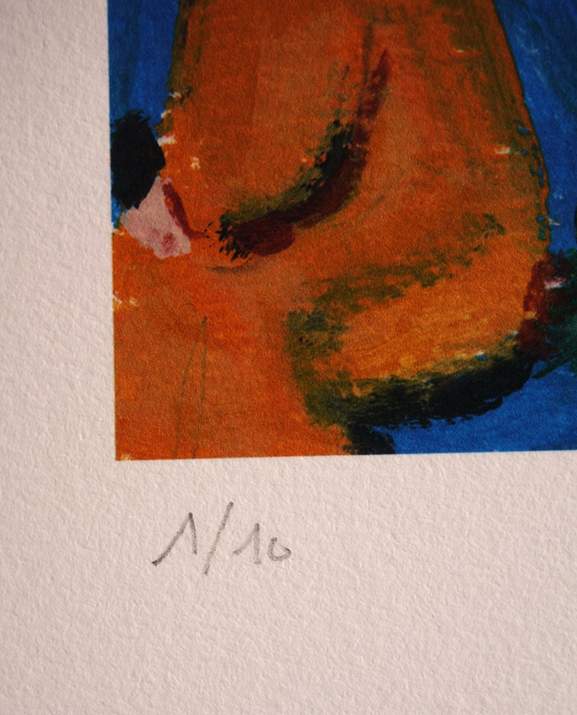 "Print", reproduction digigraphique (lithographie numérique, FineArt pigmentaire ) sur papier Canson, 100% coton (réf Arches BFK Rives 310 g), d'une dimension de 70/50cm, et celle de l'impression de l'œuvre est de 55/41cm (ce qui permet d'obtenir une Marie-Louise, càd un passe-partout autour de l'œuvre).