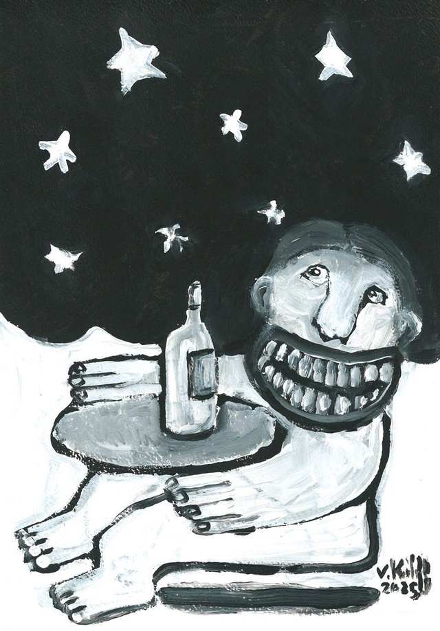 Illustration originale tirée du livre La Marche du serpent aveugle vers la vérité de Ladislav Klíma, paru aux éditions du Canoë en 2025.