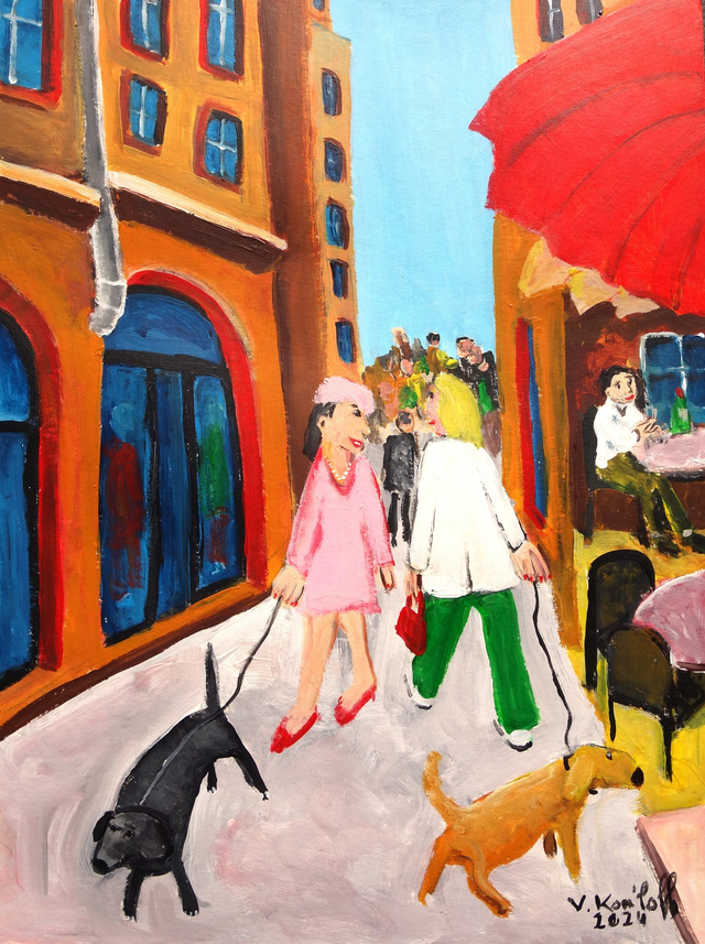 Acrylique sur papier 300gr, 40/30cm. Vendu encadré avec marquise, cadre aluminium couleur noire, dim.50/40cm. Livraison offerte.