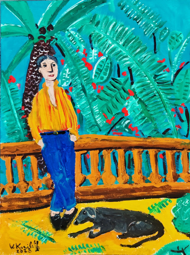 Acrylique sur papier, 40/30cm. Vendu encadré avec marquise, cadre aluminium couleur noir, dim.50/40cm. Livraison offerte.