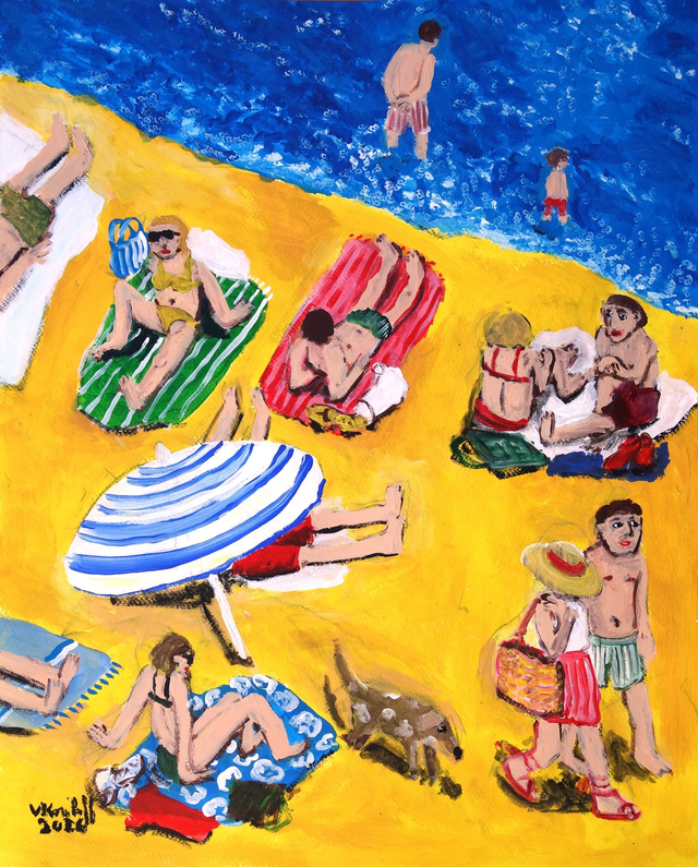 Acrylique sur papier (300g), dimensions 52/42cm. Vendue encadrée avec marquise, cadre aluminium noire, dimensions 70/50cm. Vitre organique.