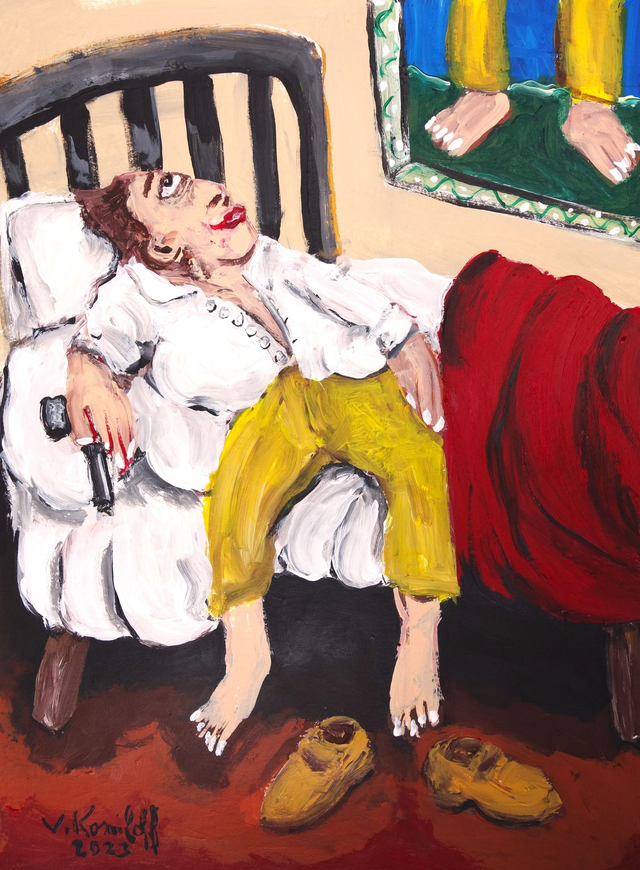 Acrylique sur papier, 300gr. 40/30cm, vendu avec marquise et encadré. Cadre aluminium couleur noire, verre organique, dim.50/40cm.
