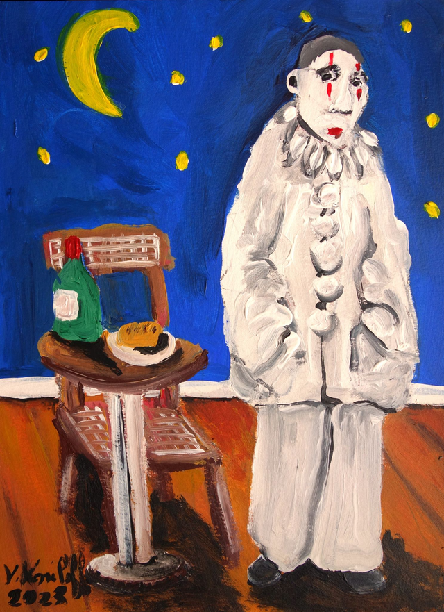 Œuvre originale qui illustre le livre "Fêtes Galantes" (Verlaine), édition Memento.