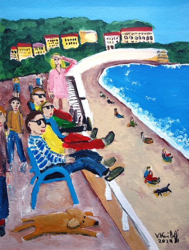 Acrylique sur papier 300gr, 40/30cm. Vendu encadré avec marquise, cadre aluminium couleur noire, dim.50/40cm. Livraison offerte.