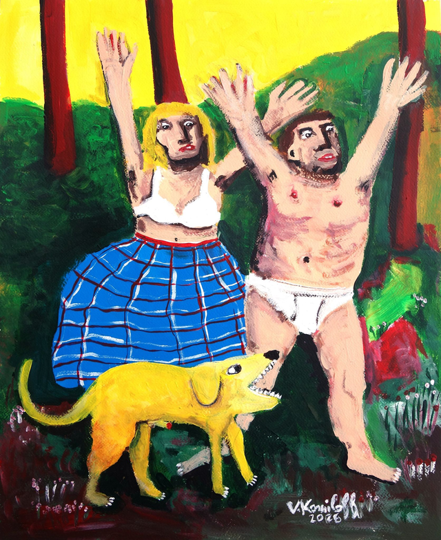 Acrylique sur papier, dimensions 52/42cm. Vendue avec marquise et encadrée. Cadre aluminium, couleur noire, vitre organique, dimensions 70/50cm.