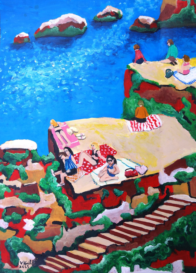 Acrylique sur papier 300gr, 40/30cm. Vendu encadré avec marquise, cadre aluminium couleur noire, dim.50/40cm. Livraison offerte.